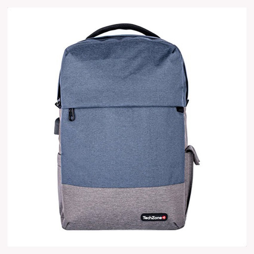 Backpack Strong Blue TechZone – de 15.6 pulgadas, múltiples compartimientos, organizador frontal, costuras y asas reforzadas, garantía limitada de por vida.